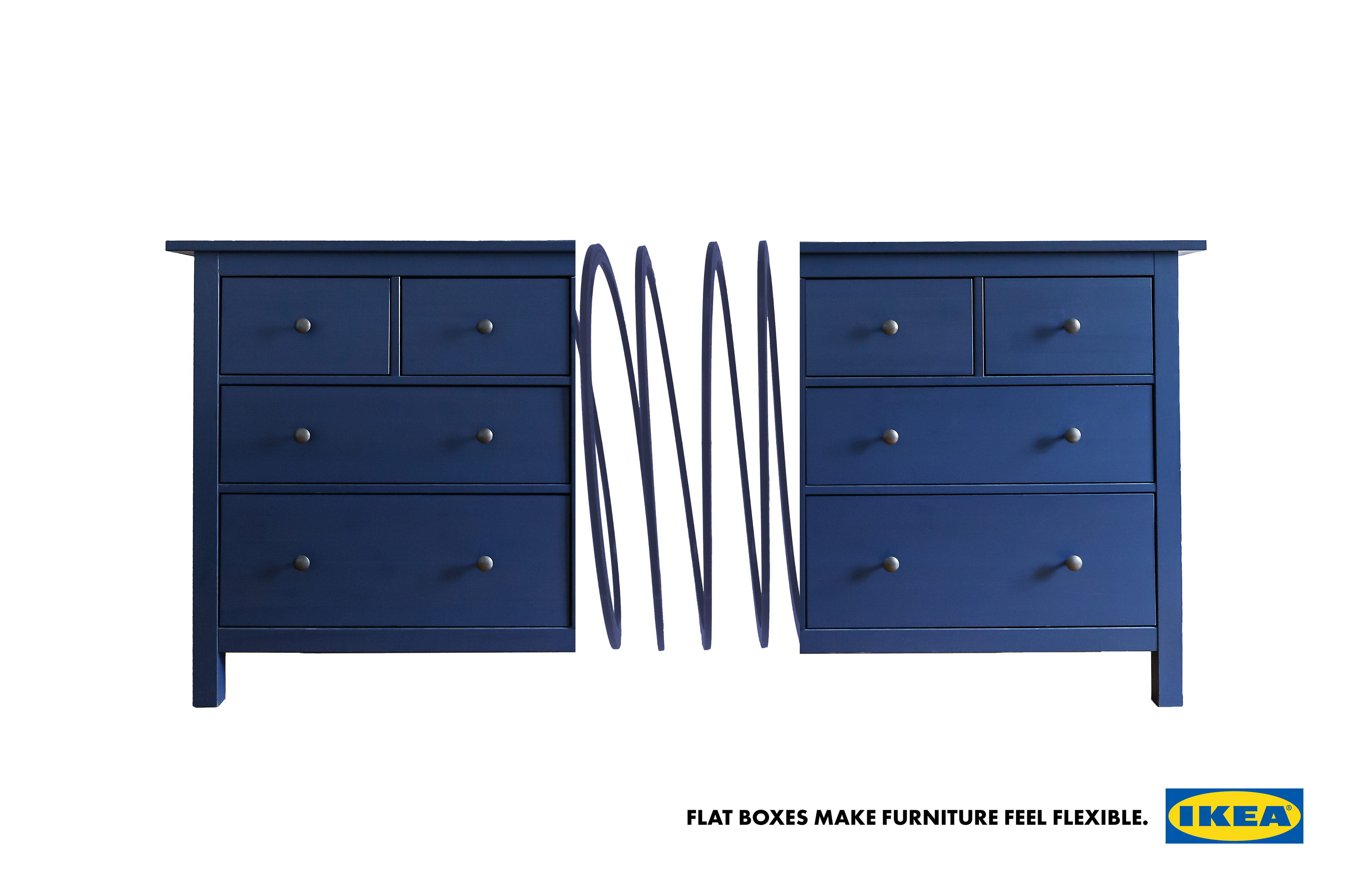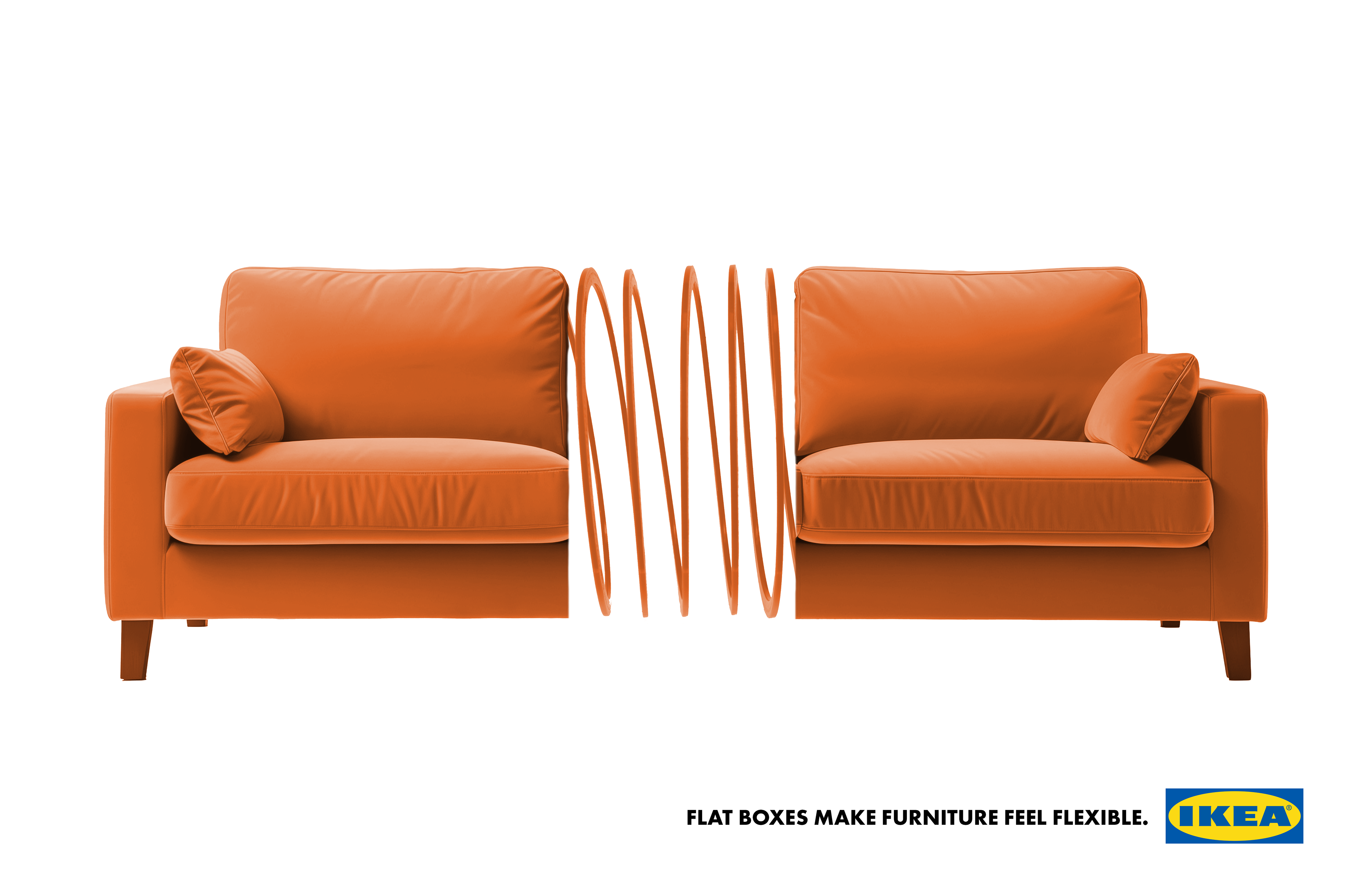 Solution Furniture that is connected by a slinky to show the flexibility of IKEA's furniture coming in flat boxes.